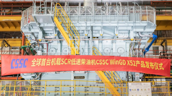 7月22日,由中國(guó)船舶集團(tuán)有限公司旗下中船動(dòng)力(集團(tuán))有限公司自主研發(fā)、大連船用柴油機(jī)有限公司建造的全球首臺(tái)機(jī)載SCR(選擇性催化還原系統(tǒng))船用低速機(jī)CSSC WinGD X52正式向全球發(fā)布。工信部黨組成員、總工程師田玉龍,中國(guó)船舶集團(tuán)黨組副書(shū)記、總經(jīng)理?xiàng)罱鸪沙鱿l(fā)布儀式并講話。國(guó)家相關(guān)部委、地方政府、船級(jí)社、航運(yùn)公司、造船企業(yè)等相關(guān)領(lǐng)導(dǎo)和專(zhuān)家出席發(fā)布儀式。