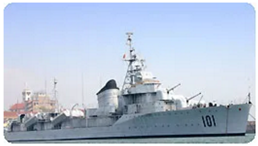 鞍山艦,舷號(hào)101,原為前蘇聯(lián)太平洋艦隊(duì)的一艘“雷擊艦”,滿載排水量2581噸。1954年10月,鞍山艦作為我國(guó)向蘇聯(lián)購(gòu)買的第一艘驅(qū)逐艦駛抵青島,1992年4月24日退出現(xiàn)役,作為重要的歷史文物陳列于海軍博物館。