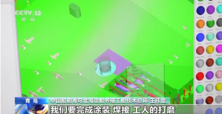 中國船舶青島北海造船養(yǎng)殖工船技術總師 王偉堂:魚排是第一次用在船舶上,整個魚排空間比較小,首先考慮就是怎么來裝。在很小的空間內,我們要完成涂裝、焊接、工人的打磨,還有系統(tǒng)調試。我們前期跟設計院做了深入的探討,尋求了一個最佳的方案,就形成了目前這個狀態(tài)。