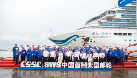 9月12日下午,中國首制大型郵輪“愛達(dá)·魔都號(hào)”經(jīng)過六天五夜1630海里的海上航行,穩(wěn)穩(wěn)靠泊于中國船舶集團(tuán)旗下外高橋造船4號(hào)碼頭。中國船舶集團(tuán)黨組書記、董事長溫剛,黨組成員、副總經(jīng)理孫偉,紀(jì)檢監(jiān)察組組長、黨組成員李佳穎到碼頭迎接。