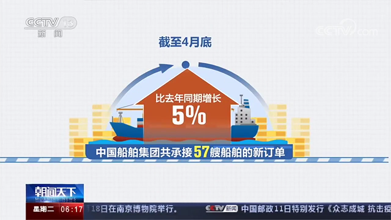 ????截至4月底,中國船舶集團共承接57艘船舶的新訂單,比去年同期增長5%。