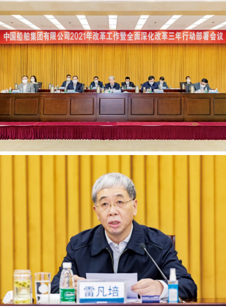 3月23日,中國(guó)船舶集團(tuán)有限公司召開(kāi)2021年改革工作暨全面深化改革三年行動(dòng)部署會(huì)議,深入貫徹黨中央、國(guó)務(wù)院關(guān)于國(guó)企改革的系列決策部署,認(rèn)真落實(shí)國(guó)企改革三年行動(dòng)要求,推動(dòng)集團(tuán)公司全面深化改革三年行動(dòng)實(shí)施方案落實(shí)落地。中國(guó)船舶集團(tuán)黨組書(shū)記、董事長(zhǎng)、全面深化改革領(lǐng)導(dǎo)小組組長(zhǎng)雷凡培出席會(huì)議并講話,黨組副書(shū)記、總經(jīng)理、全面深化改革領(lǐng)導(dǎo)小組副組長(zhǎng)楊金成主持會(huì)議,黨組成員、副總經(jīng)理、全面深化改革領(lǐng)導(dǎo)小組副組長(zhǎng)錢建平在會(huì)上作了集團(tuán)公司2021年改革工作報(bào)告,集團(tuán)公司外部董事、黨組成員出席會(huì)議。集團(tuán)公司戰(zhàn)略規(guī)劃部負(fù)責(zé)人在會(huì)上對(duì)集團(tuán)公司全面深化改革三年行動(dòng)實(shí)施方案進(jìn)行了宣貫。