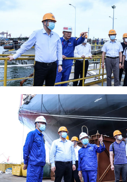 9月22日,中國船舶集團(tuán)有限公司黨組副書記、總經(jīng)理楊金成到集團(tuán)公司旗下江南造船、滬東中華調(diào)研指導(dǎo)工作。楊金成聽取了江南造船、滬東中華近期安全生產(chǎn)、疫情防控、保密保衛(wèi)、信訪維穩(wěn)等工作及生產(chǎn)經(jīng)營情況的匯報,并登上兩家企業(yè)船塢碼頭查看了重點(diǎn)在建船舶進(jìn)展情況。
