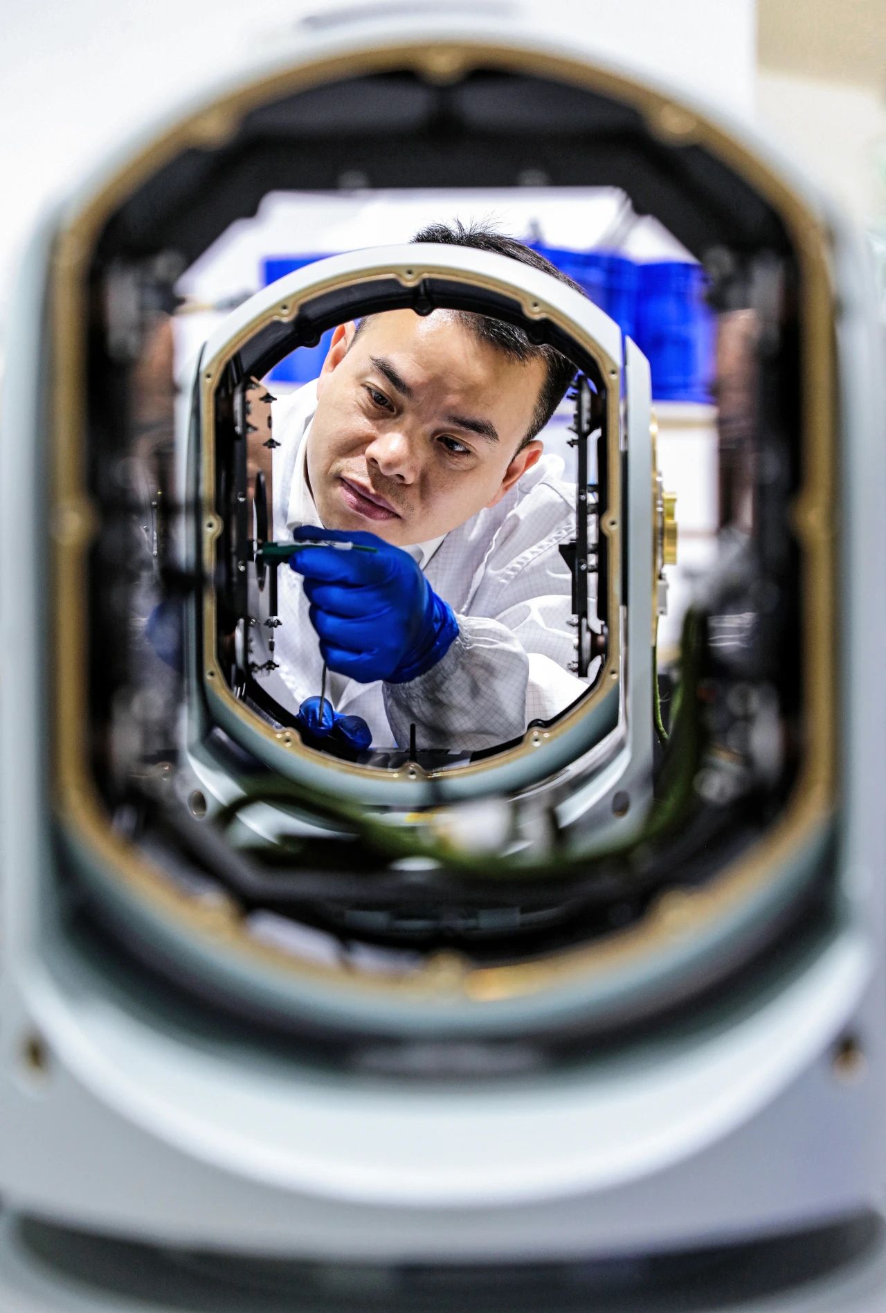 七一七所技術(shù)人員正在裝調(diào)光軸,確保光路的穩(wěn)定傳導(dǎo),在精確裝調(diào)中堅(jiān)守本心、求精求新,以匠心確保產(chǎn)品精度。