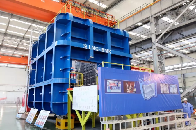 ????11月26日,中國(guó)船舶集團(tuán)所屬大連船舶重工集團(tuán)有限公司舉行“薄膜型液化天然氣運(yùn)輸船技術(shù)研究”科研專項(xiàng)MarkⅢ型液化天然氣船全封閉模擬艙建造完工暨GTT和船級(jí)社頒證儀式。