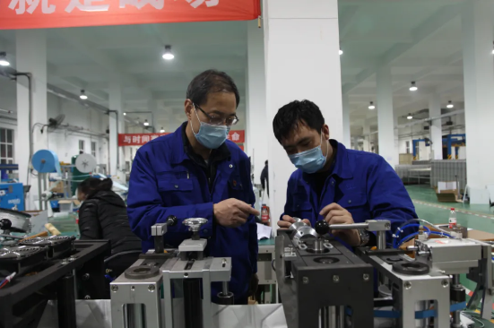 ????接到口罩機(jī)、壓條機(jī)緊急生產(chǎn)任務(wù)后,作為主要生產(chǎn)單位,金加車間黨支部連夜召開部署動(dòng)員會(huì)。一方面,緊急摸排目前能夠復(fù)工返崗的人員情況,另一方面,面對(duì)緊急繁重的任務(wù),他們做出了一個(gè)重要決定:所有在車銑鉗崗位工作過的,目前已經(jīng)在管理和輔助崗位上的職工,立即返回原崗,參與生產(chǎn)!1000多種近30000個(gè)零部件,短時(shí)間內(nèi)要全部加工完成?!斑@是建廠以來從未有過的任務(wù)量?!秉h支部書記、車間主任孫培杰在動(dòng)員會(huì)上說,“黨員要發(fā)揮好模范作用,全體員工都要給我頂上去,不獲全勝,絕不收兵!”