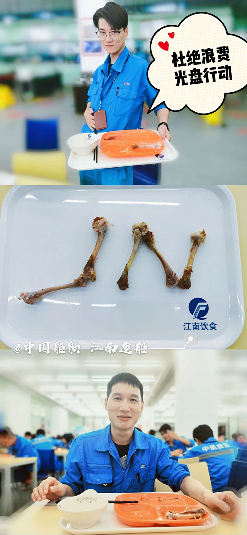 “誰知盤中餐,粒粒皆辛苦?!? 自古以來 敬天惜糧、勤儉節(jié)約就是 中華民族傳統(tǒng)美德 中國船舶集團(tuán)多家成員單位 用實(shí)際行動(dòng) 杜絕“舌尖上的浪費(fèi)”