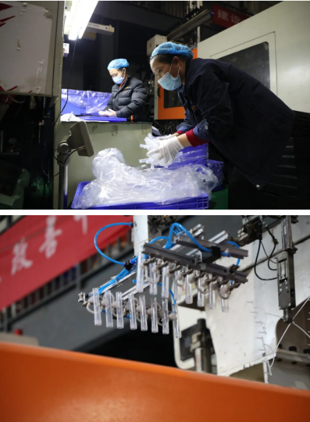 為保障防疫物品供應(yīng),春節(jié)期間,前衛(wèi)公司精密模塑產(chǎn)業(yè)生產(chǎn)車間24小時不停機。各機臺滿負荷運轉(zhuǎn),每天生產(chǎn)咽拭子棉簽棒1000萬支,一次性保存管70萬支,為全國核酸檢測能力的提升提供了強有力的保障。