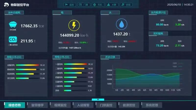 該系統(tǒng)以“物聯感知、大數據分析、三維虛實映射、數據可視化”等新一代ICT技術為支撐,實施“信息感知一張網、可視管控一平臺、用能一張圖、數據服務一中心、安全運維兩體系”五個重點建設工程,構建包括統(tǒng)一圖形化的操作界面,統(tǒng)一報警管理,統(tǒng)一歷史數據管理,統(tǒng)一用戶權限管理的架構。系統(tǒng)通過物聯感知設備,對辦公區(qū)域主要耗能設備進行實時在線感知監(jiān)控、能耗數據分析,實現公司用能態(tài)勢一張圖、違規(guī)用能三維可視化快速定點識別。