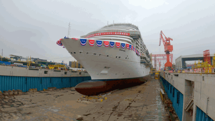 2021年12月17日,由中國船舶集團(tuán)旗下外高橋造船建造的中國首制大型郵輪順利實(shí)現(xiàn)塢內(nèi)首次起浮里程碑節(jié)點(diǎn),宣告結(jié)構(gòu)和舾裝建造的“上半場”圓滿收官!