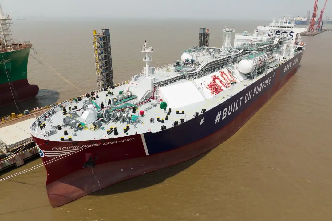 5月16日,中國船舶集團(tuán)旗下江南造船為浦銀租賃和山東海洋集團(tuán)下屬太平洋氣體船(香港)控股有限公司(PACIFIC GAS)建造的99000立方米B型艙超大型乙烷運(yùn)輸船(VLEC)“PACIFIC INEOS GRENADIER”號交付。