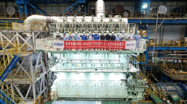 由中國(guó)船舶集團(tuán)旗下中船動(dòng)力集團(tuán)研制的全球首臺(tái)新一代智能控制廢氣再循環(huán)(iCER)系統(tǒng)的雙燃料主機(jī)7X62DF-2.1,作為向二十大獻(xiàn)禮的重點(diǎn)產(chǎn)品,不僅豐富了我國(guó)雙燃料主機(jī)的型譜,提升了市場(chǎng)競(jìng)爭(zhēng)力,也標(biāo)志著中國(guó)繼全球最大船用雙燃料低速機(jī)X92DF之后,在船用低速雙燃料發(fā)動(dòng)機(jī)研發(fā)制造領(lǐng)域保持新的優(yōu)勢(shì),實(shí)現(xiàn)新的跨越。
