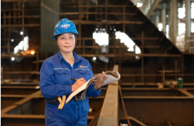 外表溫柔恬靜,說話輕聲細(xì)語,讓人無法想象烏曉紅常年在船舶建造一線摸爬滾打。在造船這個(gè)男性為主的世界里,她工作雷厲風(fēng)行,巾幗不讓須眉,先后擔(dān)任中國第一艘大型LNG船,世界最先進(jìn)雙相不銹鋼化學(xué)品船和中國最先進(jìn)遠(yuǎn)洋漁業(yè)科學(xué)考察船等一系列高端船舶的項(xiàng)目質(zhì)量主管,取得驕人業(yè)績,在高端海洋裝備制造產(chǎn)業(yè)發(fā)展中書寫著中國女性“興船報(bào)國”的人生情懷。