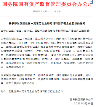 創(chuàng)建世界一流專精特新示范企業(yè)是國務(wù)院國資委貫徹黨中央、國務(wù)院關(guān)于加快建設(shè)世界一流企業(yè)決策部署,深化創(chuàng)建示范、管理提升、價值創(chuàng)造、品牌引領(lǐng)“四個專項(xiàng)行動”的重要內(nèi)容,目的在于加快建設(shè)一批培育一批“專精特新”“小巨人”和單項(xiàng)冠軍企業(yè),在不同領(lǐng)域形成百家以上不同層級的典型示范企業(yè)。