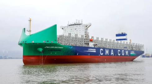 5月23日,由中國船舶集團旗下滬東中華聯(lián)合中船貿易為法國達飛集團建造的13000TEU液化天然氣(LNG)雙燃料動力集裝箱船系列4號船“CMA CGM SAOPAULO”號,在滬東中華長興島廠區(qū)命名交付。南美洲東海岸航線又將新添一艘中國“智”造的新一代綠色環(huán)保、高效節(jié)能型集裝箱船,為達飛集團箱船船隊綠色轉型發(fā)展貢獻新的中國船舶動能。