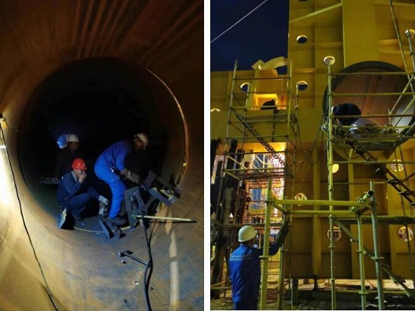 ????趕節(jié)點期間,項目團隊主動放棄節(jié)假日休息,每天通宵輪流作業(yè)。一線工班和施工隊人員更是不論白天黑夜,持續(xù)做好吊裝分段,合攏口裝配焊接等工作,為項目開展不斷奮戰(zhàn)。