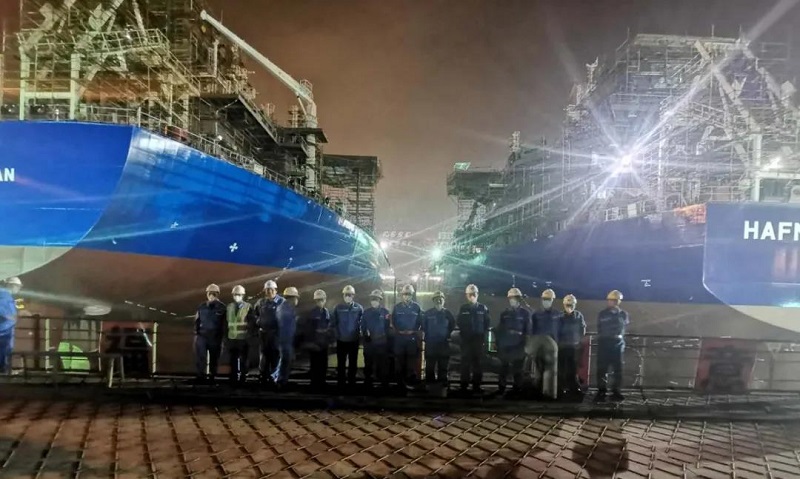 ????進(jìn)塢后,兩艘船將進(jìn)行主船體搭載包括主要設(shè)備吊裝、各系統(tǒng)完整及艙室報(bào)驗(yàn)等工作,為吊裝、拼接、合攏做準(zhǔn)備。