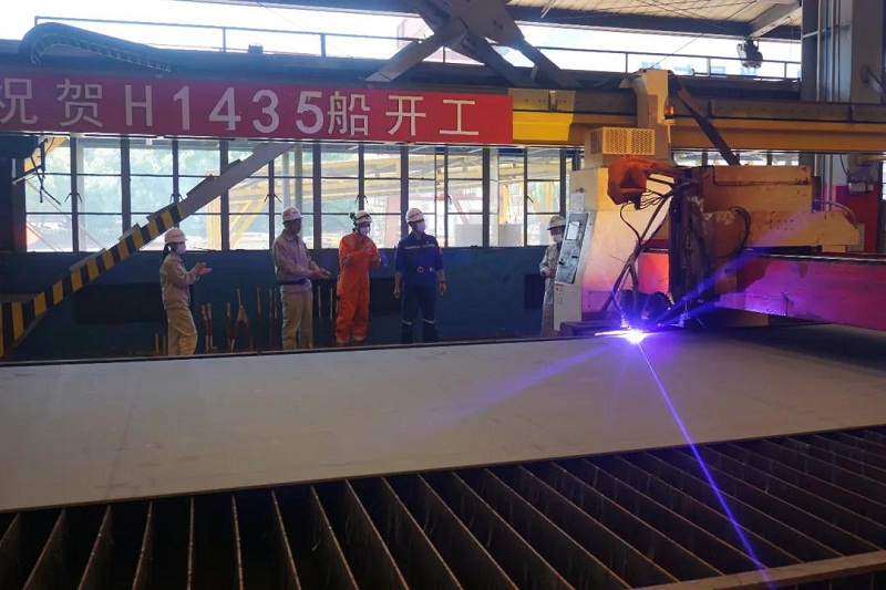 ????日前,中國船舶集團(tuán)旗下外高橋造船為PTM公司建造的阿芙拉型油船順利開工。受疫情影響,船東駐廠組代表無法到場,特意委托英國勞氏船級社(LR)代表驗(yàn)收開工鋼板情況、見證鋼板切割,并以“云簽字”的形式簽署了開工節(jié)點(diǎn)證書。