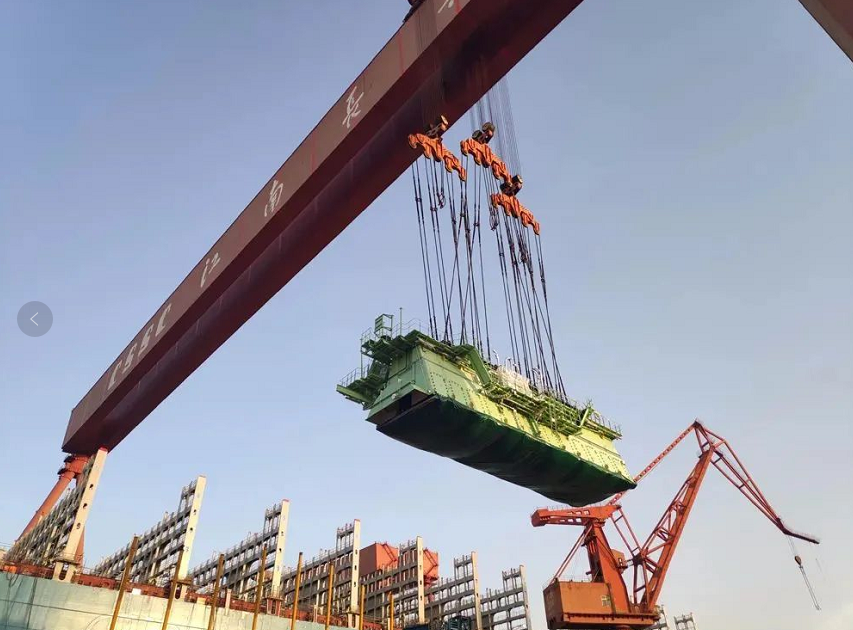 ????日前,中國船舶集團(tuán)旗下滬東中華順利完成23000TEU集裝箱船3號船的主機(jī)吊裝工作,標(biāo)志著該船向出塢邁出最關(guān)鍵一步。主機(jī)吊裝整個(gè)過程用時(shí)不到5天,同時(shí)取得僅用2.5天就完成5大件吊裝的新突破,為同行業(yè)系列船最短紀(jì)錄。