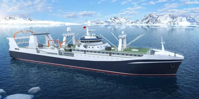 由七〇一所武船院設(shè)計(jì)的該系列南極磷蝦捕撈加工船排水量近2萬噸,采用先進(jìn)的連續(xù)捕撈系統(tǒng)及現(xiàn)代化生產(chǎn)流水線,是我國(guó)目前已啟動(dòng)最大最先進(jìn)的南極磷蝦捕撈加工船,建成后將填補(bǔ)我國(guó)在南極磷蝦高端漁船設(shè)計(jì)領(lǐng)域的空白,為我國(guó)開發(fā)南極磷蝦產(chǎn)品提供裝備保障。