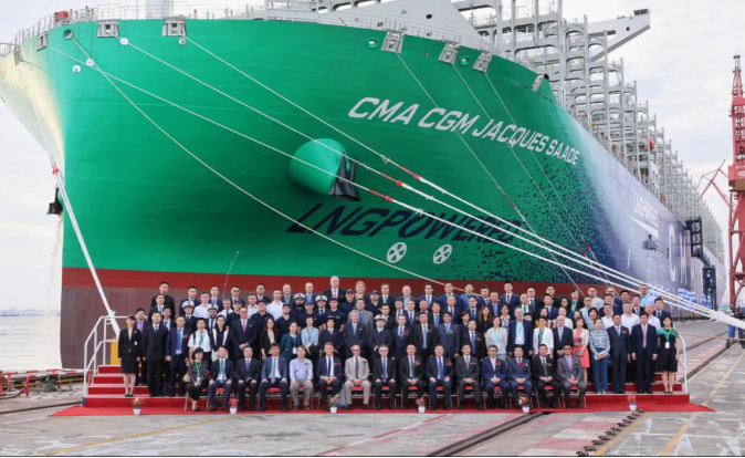 被譽(yù)為“明星”船型的這艘雙燃料動(dòng)力集裝箱船,一直以來(lái)備受業(yè)界廣泛關(guān)注,她的成功交付是我國(guó)船舶工業(yè)高質(zhì)量發(fā)展取得的重要成果,彰顯了中國(guó)船舶集團(tuán)作為世界一流造船集團(tuán)雄厚的研發(fā)、設(shè)計(jì)和建造實(shí)力,標(biāo)志著中國(guó)船舶集團(tuán)在世界大型集裝箱船領(lǐng)域成功實(shí)現(xiàn)從跟隨到引領(lǐng),書寫了中國(guó)船舶工業(yè)新的榮耀。