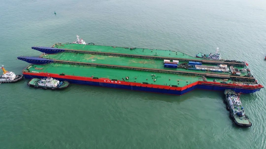 改造后的“海洋石油229”號導(dǎo)管架運(yùn)輸下水能力從30000噸提升至38500噸,可滿足高達(dá)302米、重達(dá)3萬噸的“?;惶枴毖b船、運(yùn)輸?shù)刃枨蟆?
