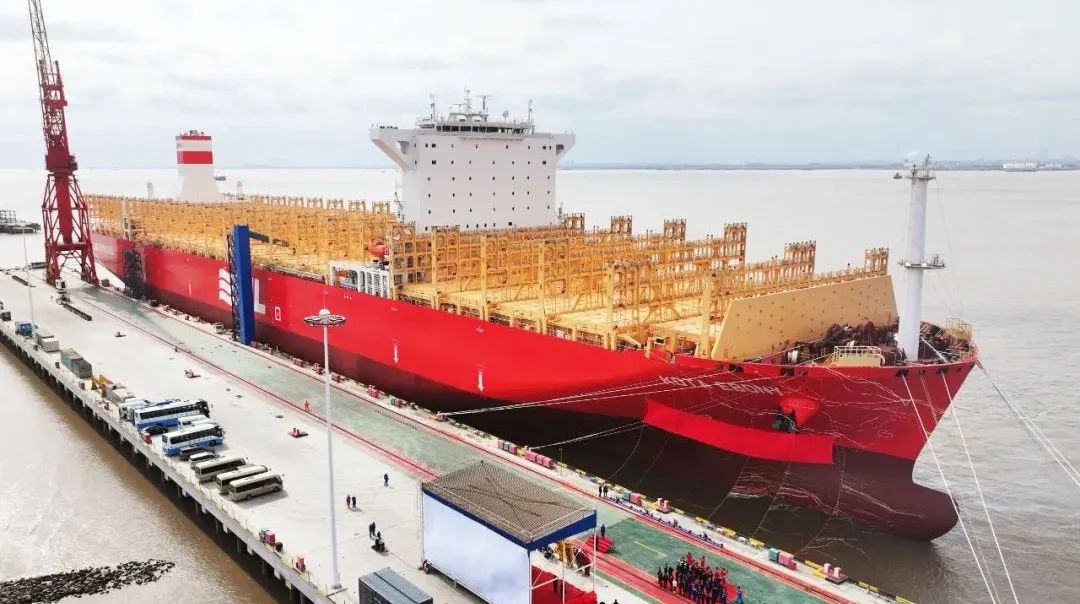 近日,中船集團(tuán)旗下江南造船為太平船務(wù)建造的14000TEU液化天然氣(LNG)雙燃料動(dòng)力集裝箱船系列船3號(hào)船“KOTA Ebony(檀城)”號(hào)命名交付。