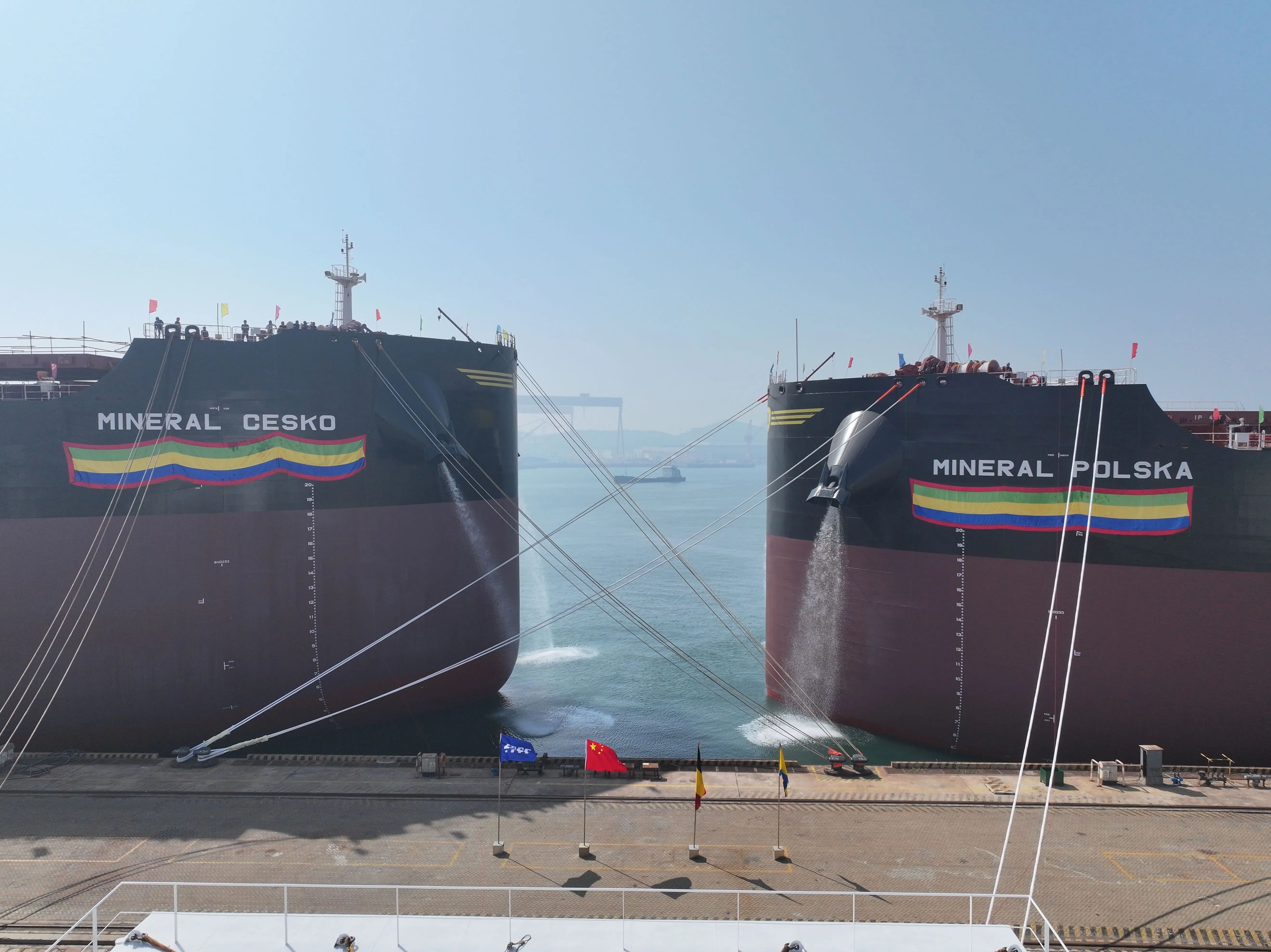 5月20日,北海造船為比利時CMB.TECH公司建造的2艘21萬噸氨燃料預(yù)留散貨船“MINERAL?CESKO”號和“MINERAL?POLSKA”號同日命名。