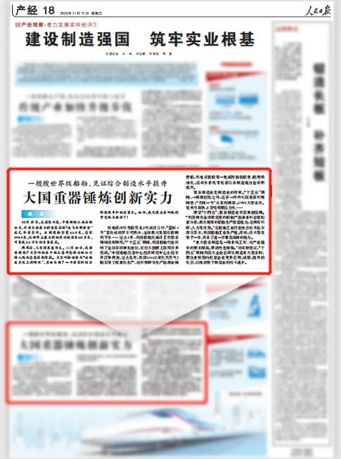 今天,人民日?qǐng)?bào)產(chǎn)經(jīng)專版在《產(chǎn)經(jīng)觀察·著力發(fā)展實(shí)體經(jīng)濟(jì)》第一期報(bào)道《建設(shè)制造強(qiáng)國筑牢實(shí)業(yè)根基》中將鏡頭對(duì)準(zhǔn)了中國船舶集團(tuán)。