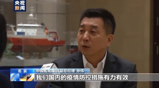 中國船舶集團副總經(jīng)理 孫偉:其中重要的一條,就是我們國內(nèi)疫情防控措施有力有效,堅定了船東對中國企業(yè)的信心,我們的研發(fā)人員主動作為、創(chuàng)新工作,確保了在疫情下和客戶的溝通交流各個環(huán)節(jié)的暢通、高效。