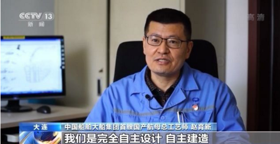中國船舶大船集團首艘國產航母總工藝師 趙育新:從第一次海試到最后交付,在這一年半的時間里沒有休息的,連軸(日以繼夜)地在這個工程上,一起拼搏。