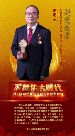 2020年8月11日,授予在抗擊新冠肺炎疫情斗爭中作出杰出貢獻(xiàn)的人士國家勛章和國家榮譽稱號, 張定宇被授予“人民英雄”國家榮譽稱號。