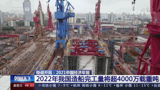 2021年,中國造船三大指標全面增長,造船完工量、新接訂單量、手持訂單量保持全球第一,實現(xiàn)了“十四五”的開門紅。
