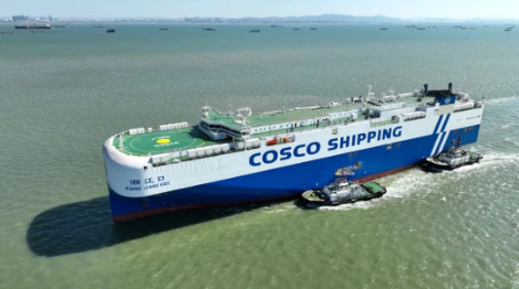 12月12日,中國船舶集團旗下廣船國際為中信金租建造的7000車LNG雙燃料動力汽車運輸船(PCTC)“湘江口”號命名交付。